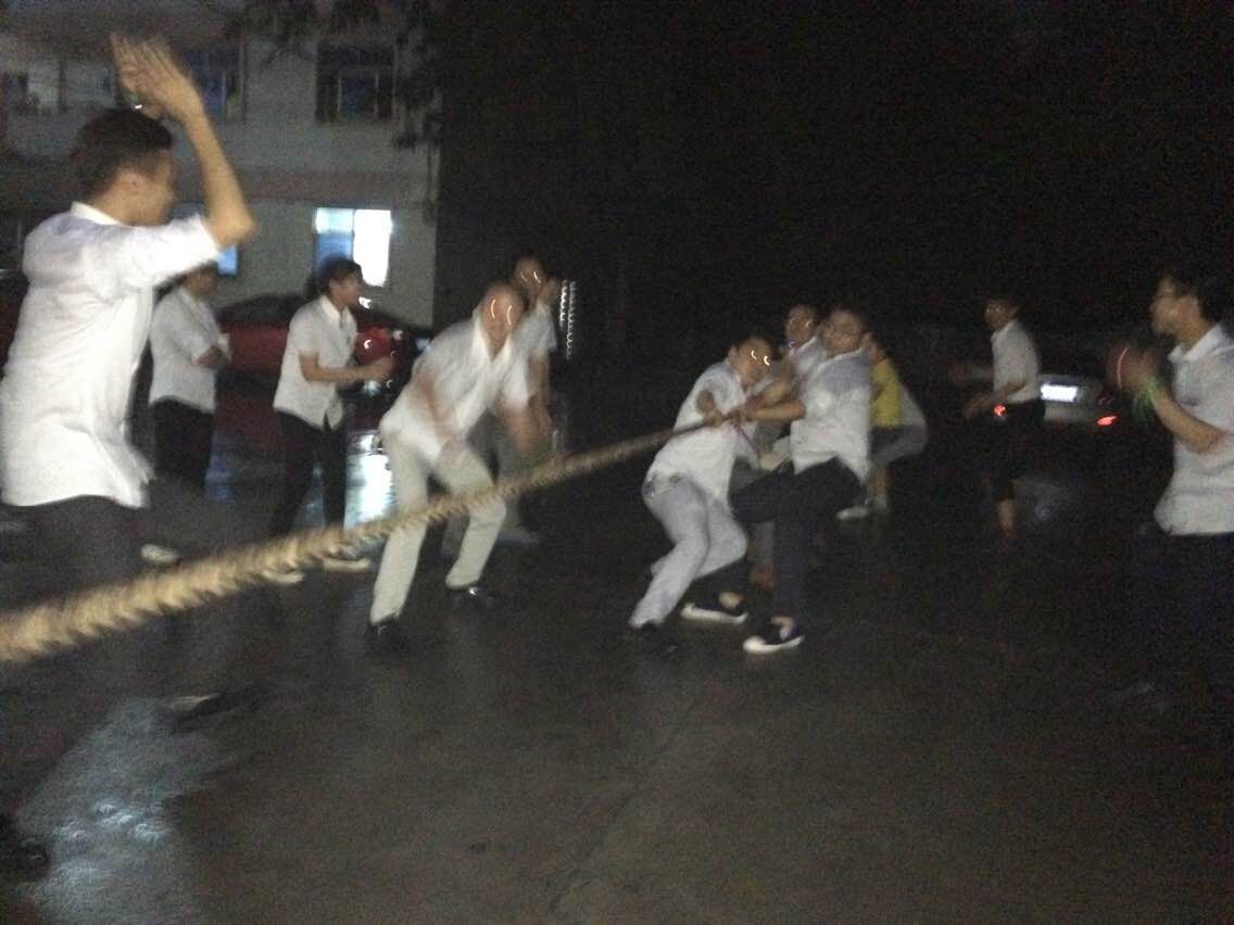 2015年4月7日公司舉行拔河比賽,上午還晴空萬里的天氣,下午卻天公不作美和之前風和日麗的景致截然相反突然下起了大雨,所有一直焦急的等待著雨停,一直到下午6.30分,雖然仍是陰雨飄落,且溫度降低且天已經黑了,在經過各隊長的商量后一致決定冒雨拔河。