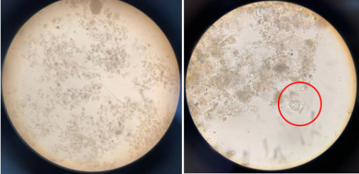 (鏡檢污泥絮體細(xì)碎,可見少量輪蟲及表殼蟲,鐘蟲等原生動物較少 )
