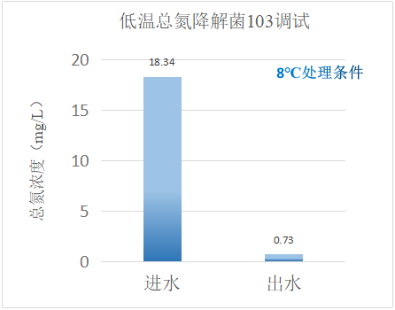 通過技術人員現場投加低溫總氮降解菌103,再配合現場生化系統運行條件控制、優化,達到如下效果: